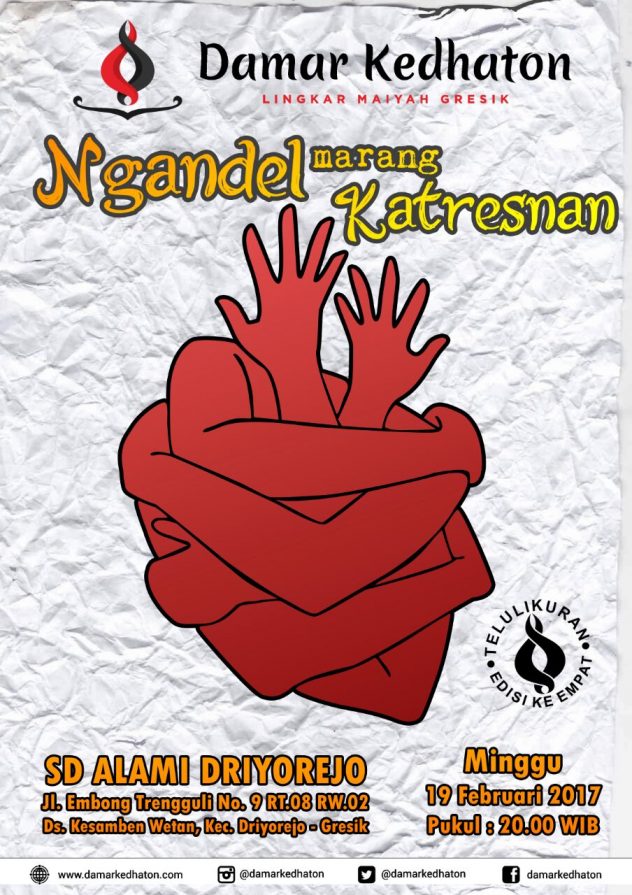 Untuk itu, mari saling percaya dengan rasa cinta, saling menjaga di dalam lingkaran katresnan Telulikuran edisi ke-4, berhimpun dalam kesatuan cinta yang InsyaAllah akan berlangsung di :