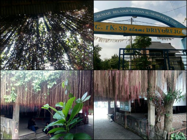 Sepetak keasrian tetumbuhan hijau mencuri perhatian di tengah kota industri yang identik dengan polusi udara dari pabrik-pabrik yang ‘mengepung’ kota Gresik bagian selatan, tepatnya, di wilayah Kecamatan Driyorejo. Debu-debu yang beterbangan akibat kepadatan volume kendaraan besar di sepanjang jalan, tak mampu mengabuti keunikannya. SD ALAMI DRIYOREJO, sebuah sekolah dasar yang dikelola oleh Yayasan Al-Mushoffah di Desa Kesamben Wetan tersebut, memang memiliki konsep ‘Melestarikan Alam dan Pembelajaran di Luar Kelas.’