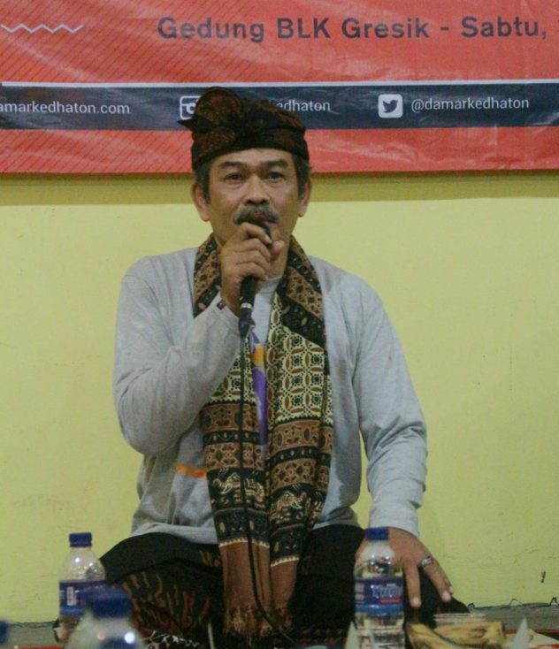 Ada satu jamaah yang berasal dari Kediri. Cak Fajar namanya. Ia juga sudah hadir sejak pagi untuk mengikuti beberapa kelas workshop. Ia juga menyampaikan titipan salam dari dulur-dulur Sanggar Kedirian (SK) Kediri kepada jamaah Damar Kedhaton. Cak Fajar berbagi pemikiran tentang “Berdaya dan Berkarya”. Menurutnya, anak-anak muda masa sekarang sebenarnya sudah kreatif. Hanya saja, mungkin ada sisi ketidaktepatannya jika mengarah kepada materialisme.