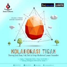 Dulur, menapaki momentum Milad Damar Kedhaton yang ke-3 ini, mari melingkar kembali sinau bareng menggali ilmu dengan payung tema “Kolaborasi Tigan” pada ;