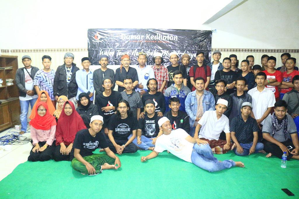 Juz 18 dideres secara bergantian oleh anggota remas Dusun Purworejo. Angka 18 sekaligus sebagai penanda bahwa Majelis Ilmu Telulikuran Damar Kedhaton kali ini tiba pada putaran ke delapan belas. Sejak mula memang diniati demikian, satu juz dikhatamkan setiap mengawali Telulikuran. Jika meminjam istilah gerakan yang kekinian, maka bolehlah disebut OMOJ, One Month One Juz. Suasana musholla MI Hidayatul Ulum Dusun Purworejo Desa Metatu Kec. Benjeng pada minggu malam 8 April 2018 kian diliputi atmosfer khusyu’, ketika jamaah duduk melingkar melantunkan wirid-wirid maiyah dan sholawat nabi. Dipandu Cak Dedy dan Cak Huda, nyaris satu jam jamaah menghanyutkan diri dalam telaga katresnan pada Allah SWT dan Kanjeng Nabi Muhammad SAW. Sebagaimana tradisi Telulikuran, beberapa “wajah baru” kemudian dipersilakan memperkenalkan diri. JMDK tentu bersyukur mendapati beberapa dulur dari luar kota Gresik menyempatkan mampir berbagi kegembiraan. Ada Cak Anang dari Gambang Syafaat (Semarang), Cak Qohar dari Serdadu Cinta (Bojonegoro), dan beberapa dulur dari Surabaya. Usai perkenalan, Cak Hanief (Ketua Remas) memberikan sambutan mewakili Kepala Dusun. Ia menyampaikan rasa bahagia atas terselenggaranya rutinan Damar Kedhaton bulan April ini di kampungnya. Ia berharap kelak DK diperjalankan mampir lagi di Purworejo.