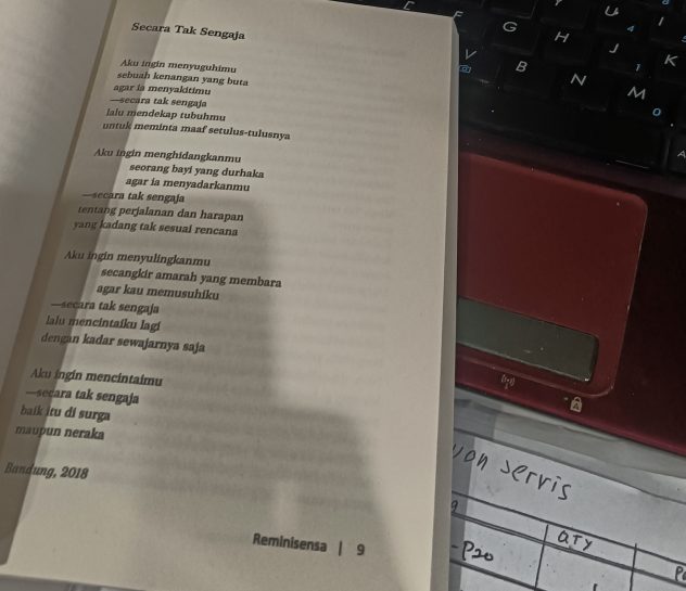Kembali ke status WA itu. Mengapa foto judul puisi Secara Tak Sengaja yang saya pilih? Padahal ada banyak halaman lain yang tak kalah menggetarkan isinya.